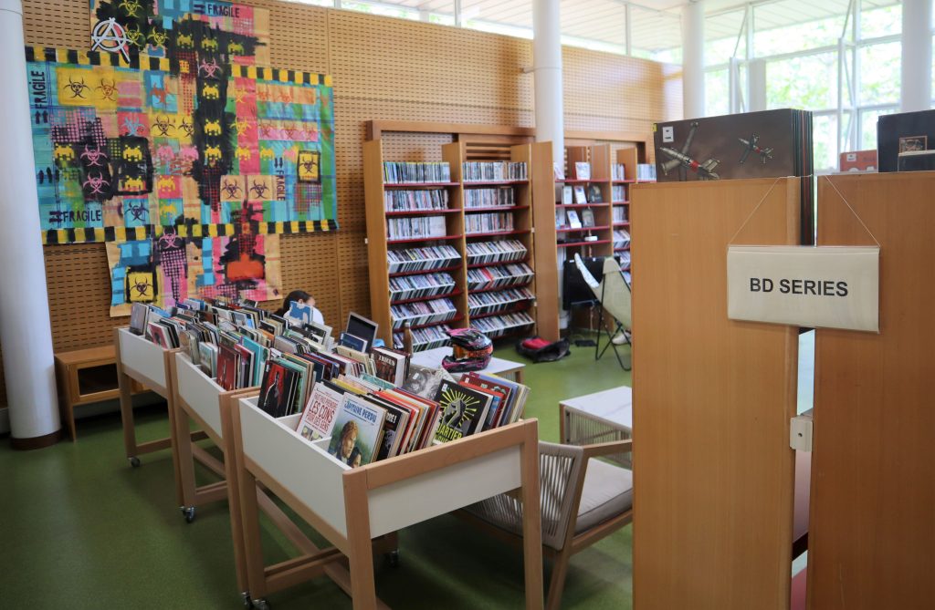 Une bibliothèque peut en cacher une autre. Un peu plus haut sur le campus se trouve la médiathèque de l’INSPE. Si le lieu et les collections sont plus modestes en taille, ils n’en demeurent pas moins importants notamment pour le jeune public. En effet, la médiathèque accueille toutes les collections jeunesse (contes, albums, BD pour enfants) pour le plus grand bonheur des enfants, parents et enseignants.