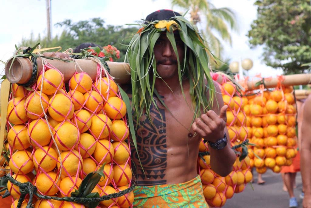 La fĂȘte de lâorange est lâoccasion pour les habitants de la ville de Punaauia de saluer le courage de ces hommes et femmes qui risquent leurs vies pour perpĂ©tuer la coutume des ancĂȘtres et offrir Ă la population lâoccasion de dĂ©guster ces fruits juteux.
