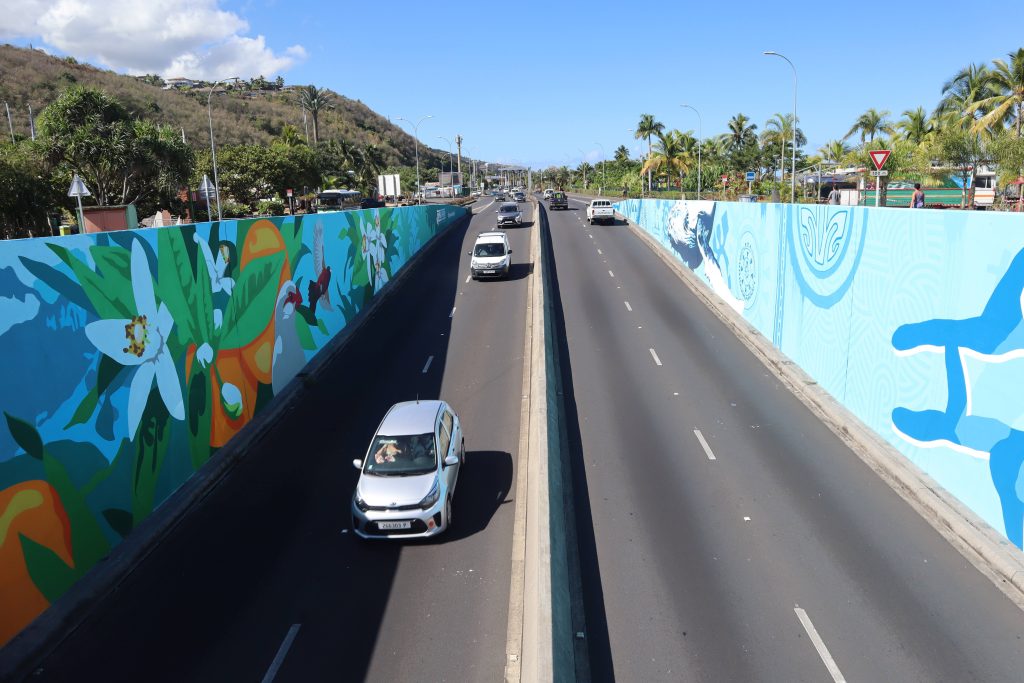 Le tunnel de Punaauia offre aux automobilistes une plongée dans le patrimoine naturel de Punaauia, avec, côté mer, l’illustration de la faune marine, et côté terre, une ode à la richesse de la biodiversité terrestre de Punaauia.