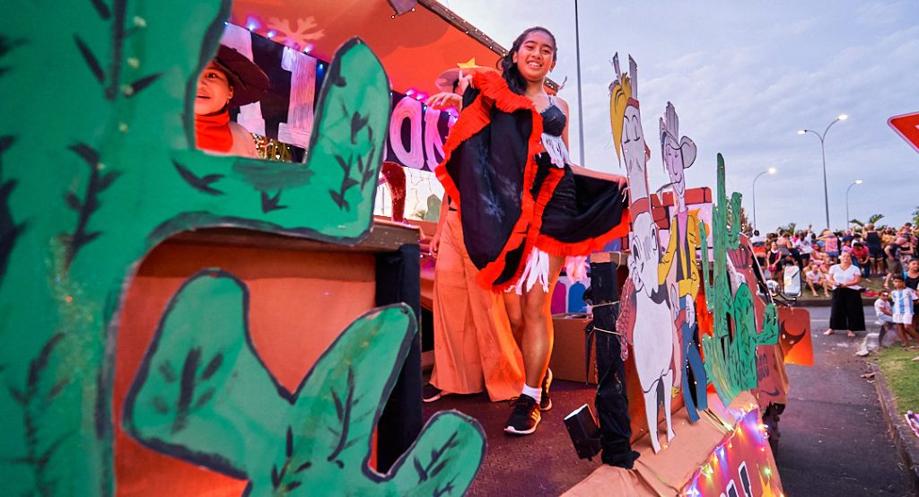Une fois tous les deux ans, Ă  l’approche de NoĂ«l, la ville de Punaauia met en place le Heiva Taravana, un grand dĂ©filĂ© des quartiers de la ville.