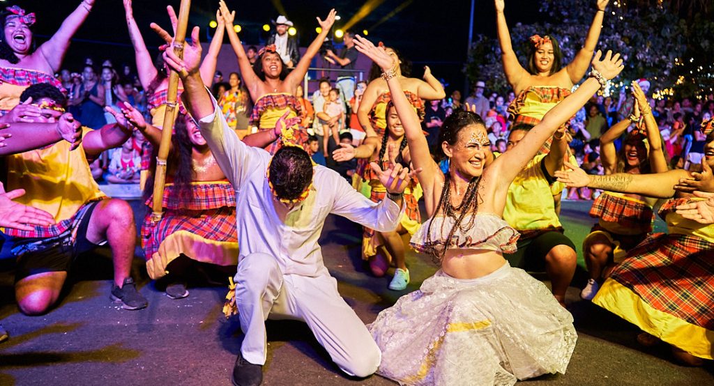 Le temps d’une soirĂ©e, des groupes de danse dĂ©filent sur des chars colorĂ©s et proposent des prestations plus originales d’annĂ©es en annĂ©es.