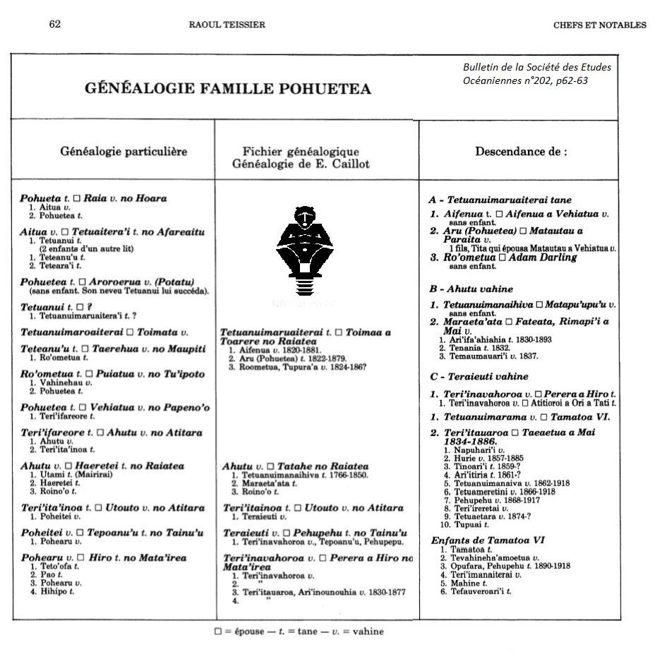 Selon FORSTER, un des compagnons de James COOK, POHUETEA avait pour épouse PURUTIFARA (ou ARORORUA), descendante d’une des grandes familles des chefs des Îles-Sous-Le-Vent.